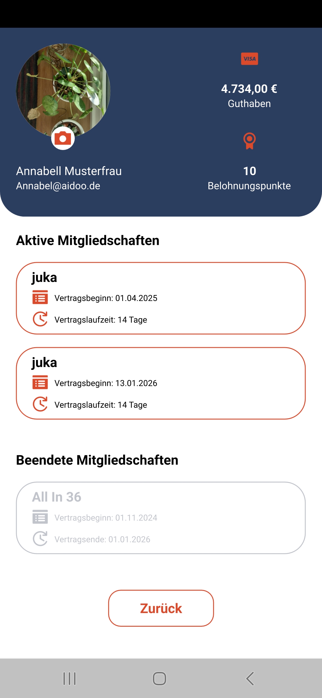 Im Guthabenbereich kann ein Mitglied Guthaben aufbuchen. Die hier sichtbaren Guthaben werden als Guthabenartikel über die aidoo Manage konfiguriert. Eine Anleitung dazu ist hier zu finden. Die Bezahlung ist möglich per SEPA-Lastschrift oder PayPal. Zur Nutzung von PayPal muss dieser Zahlungsanbieter über die aidoo Manage konfiguriert werden. Dazu ist eine Anleitung hier zu finden.